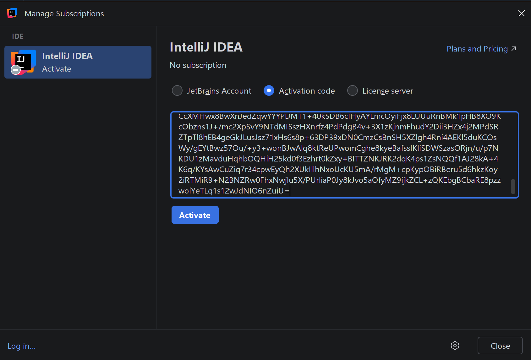 激活码目录里面对应的 idea 激活码复制到 IDEA 中,点击激活即可。